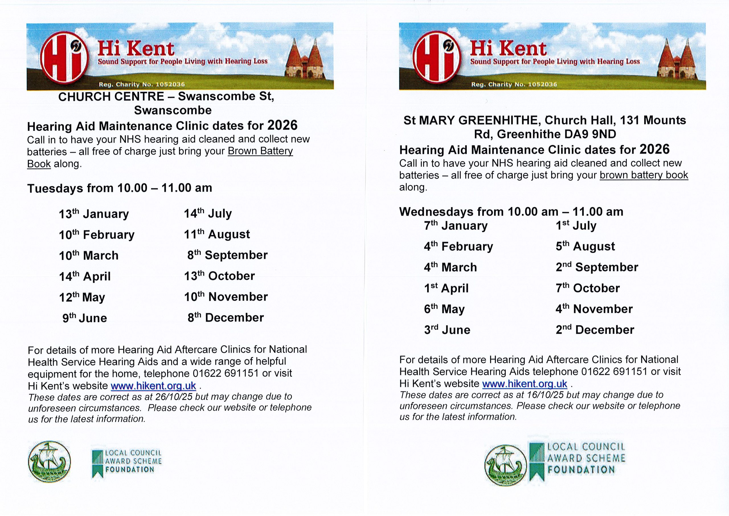 Details of the Community Hearing Aid clinics in both Greenhithe and in Swanscombe can be found here:
